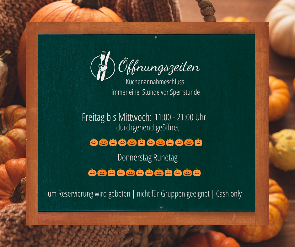 Freitag bis Mittwoch: 11:00 – 21:00 Uhr | durchgehend geöffnet